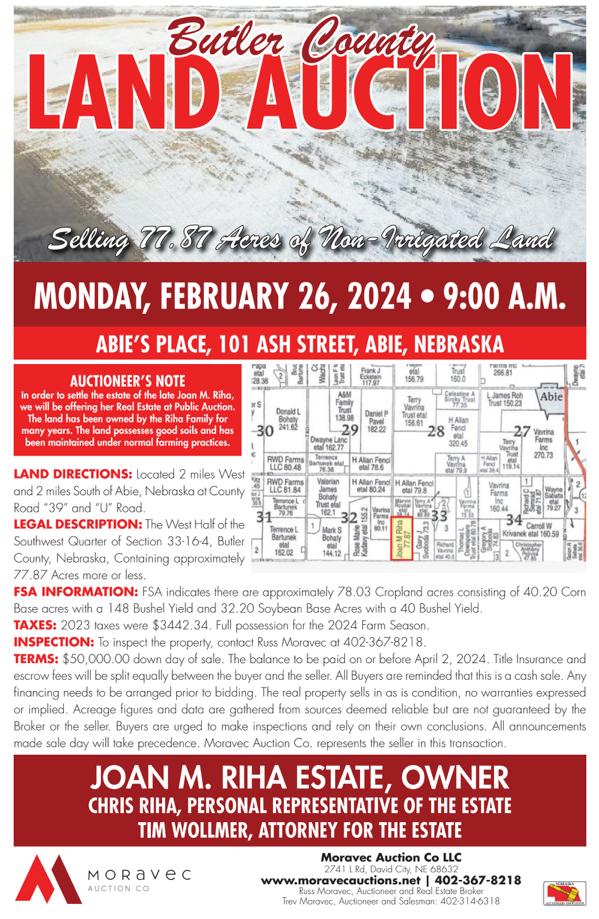 Butler County Land AuctionAug 11, 20251 min readRESULTS Thank you to the buyers, bidders and all in attendance!Farm brought $11,900.00 per acre.